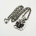 チェーンの長さ:45cm ロックのスタンダードモチーフ「アイアンクロス」、「スカル」、「ピラミッドスタッヅ」をステアしたデザイン。 クールでハードな印象。