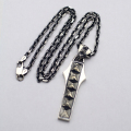 チェーンの長さ:45cm 棺桶型のプレートに6つのピラミッドスタッヅを配置したデザイン。 ドライでスタイリッシュな印象。