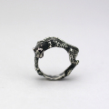 石: ブルーサファイア 0.02ct × 2石 豹をモチーフにしたリング、豹柄有りのタイプ。 両目にはブルーサファイアを配置。