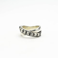 中央に7つのスタッヅ、両サイドにアイアンクロスを配置した、二連風ギミックのリング。