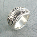 百足が這いつくばった姿が奇妙なリング。足の一本一本を丁寧に作りこむその技術は最高峰。