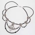 中央のチャームにはドクロともクロスとも見て取れる大きなトップが下がっています。チャーム部分はすべてシルバー製。留め具はボックスのクラスプ。