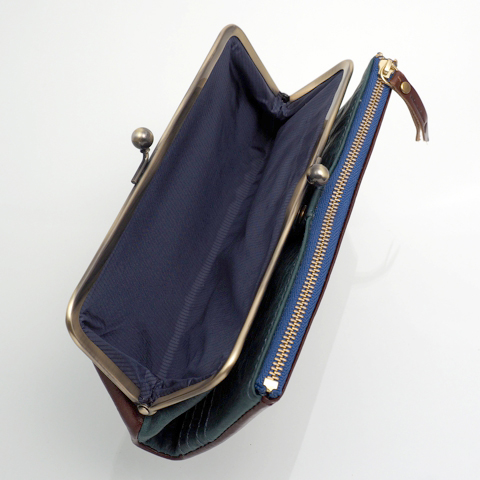 大きく使い勝手の良いがま口と、ファスナー開閉の札入れは、財布を開かずにお金の出し入れが可能。