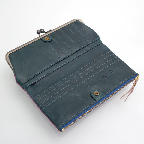大きく使い勝手の良いがま口と、ファスナー開閉の札入れは、財布を開かずにお金の出し入れが可能。