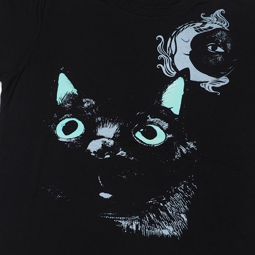 時の黒猫 Tシャツ 夜の太陽