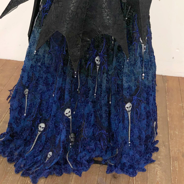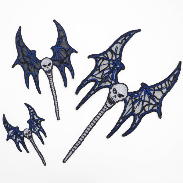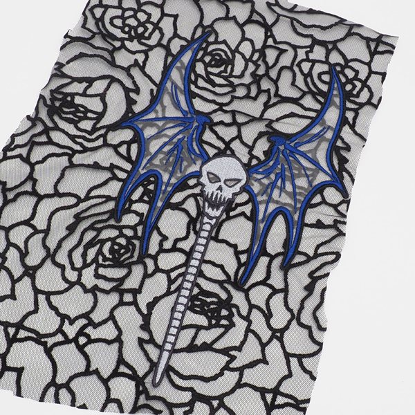 画像2枚目のように、スカルバットはレース生地に刺繍されております。