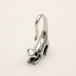 小動物がちょこんとうずくまる可愛いピアス。尻尾の部分が耳にかかり、揺れる姿が愛らしい。