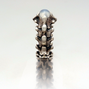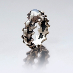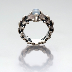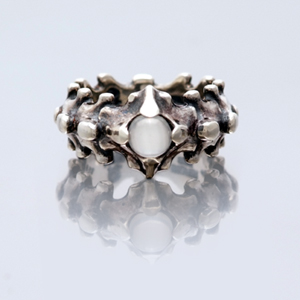 石をメインにデザインされたシンプルなリングに見えますが、脊椎をモチーフにしたデザインは「一馬」らしい謎めいた魅力があります。アレンジする石はセンターに1つ。