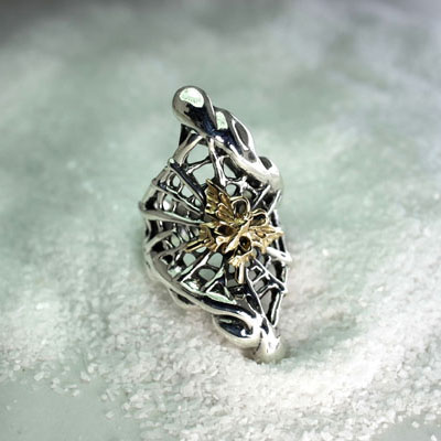 極楽に住むクモの巣をイメージしたリング。 雲に張るクモの巣を表現している。