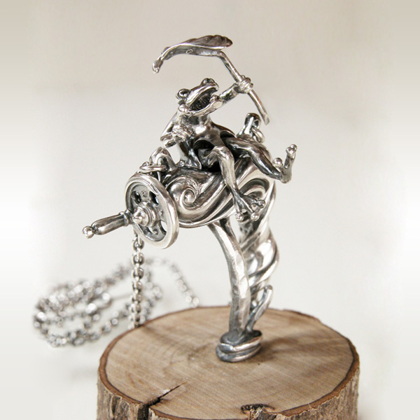 ハンドルを回すと、足がパタパタと動きます。(土台付き)
